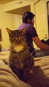 Lost cat around 1st street Flagstaff Az, 86004. Brown tabby cat, overweight, super friendly and responds well to his name