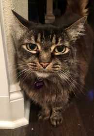 Description: Medium hair brown and black 12 year old cat Location: Village at Cedar Ridge (Near the White Gazebo) Date: August 11, 2017 Comments: Mia never ventures far from home, she is very sweet and friendly but is older and doesn't like to be picked up and or held but will let you. Her collar unfortunately fell off the night before she went missing. 360-991-6154 (Christi)