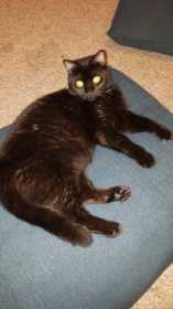 Luna is silky black with a little white on her chest. Her side buldge out a little making her look bigger than she is. She will be scared mostly to anyone and hiss but when she trust shes so sweet! We need her home before we move please help me find her!! Shes spayed, around 2 yrs old and has beautiful bright yellow eyes!