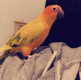She flew away from home on Sunday July 30 2023 around 12pm. We live in San Leandro Ca in Alameda County. She has a 23 days old baby at home waiting for her please help us! We’re devastated. If you call her name she will whistle back.
